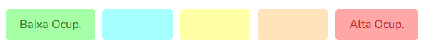 É apresentada uma legenda em cores que indica se a turma está com baixa ou alta ocupação.