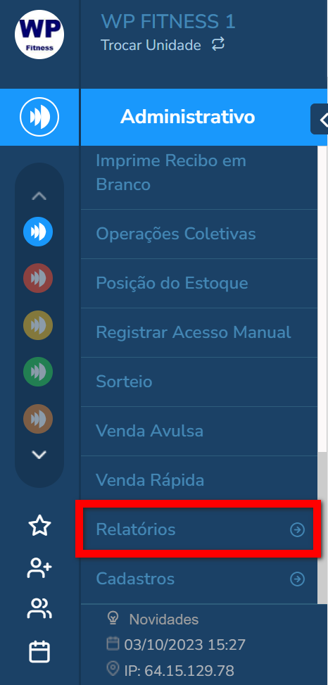 1. No menu lateral esquerdo do módulo ADM, clique em “Relatórios“;