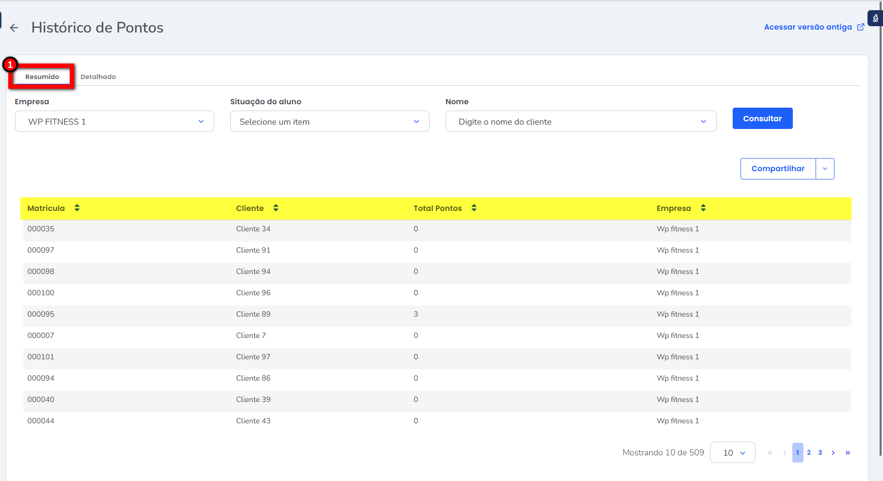 Se a sua academia utiliza o clube de vantagens, você pode acompanhar a listagem completa da quantidade de pontos conquistados pelos alunos.