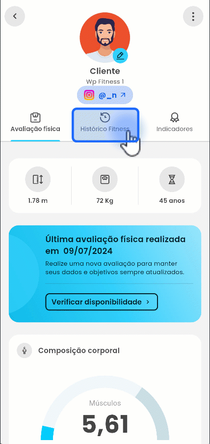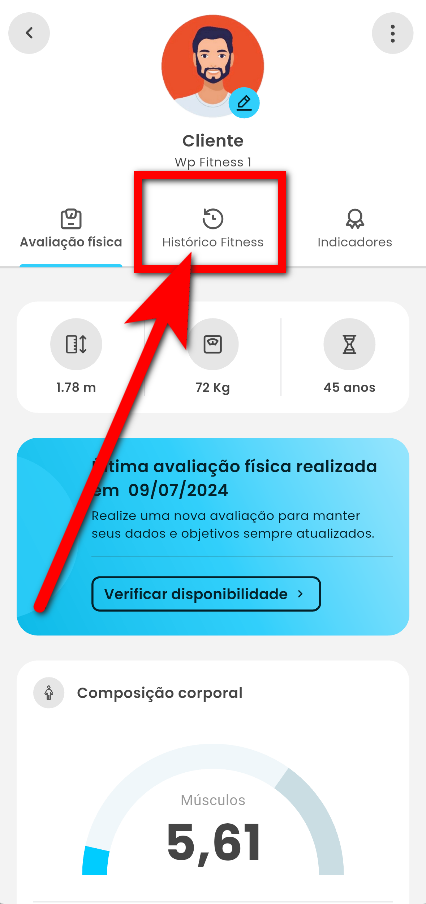 2. Na tela clique em “Histórico Fitness”;