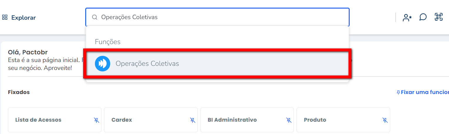 1. Na lupa de busca do sistema, pesquise por “Operações coletivas”;