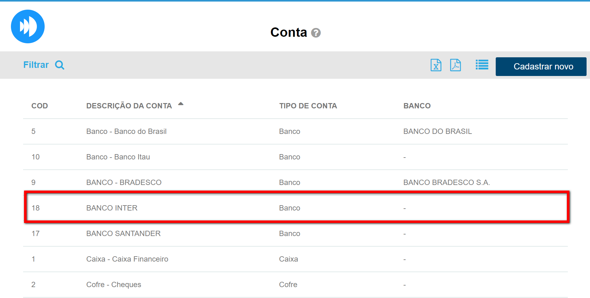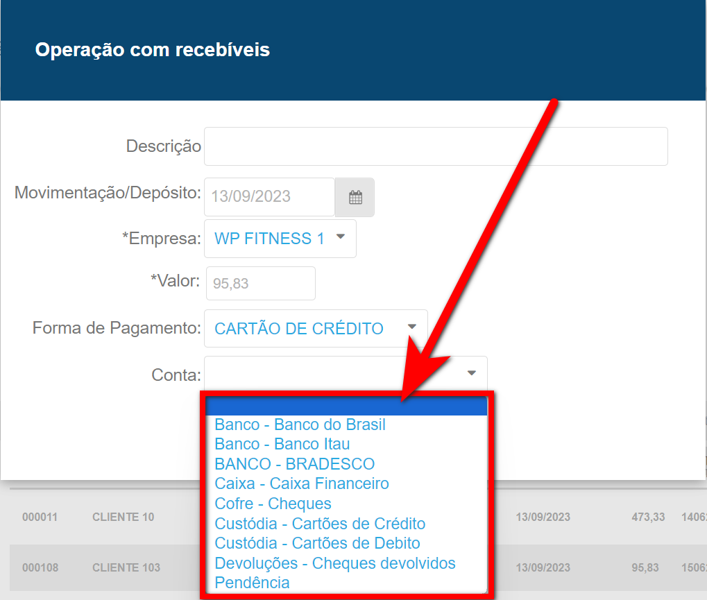 Para saber como criar ou editar uma conta para as movimentações financeiras, clique aqui.