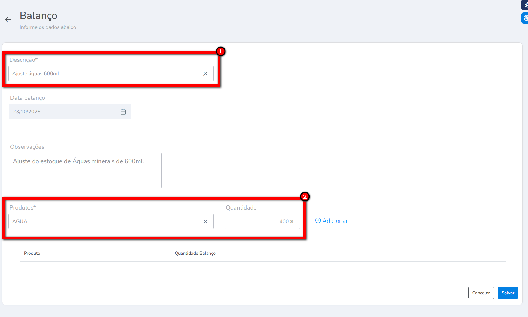 Em situações em que o estoque físico difere do registrado no sistema, seja por perdas ou extravios, é necessário utilizar o Balanço para ajustar a quantidade de produtos no sistema.
