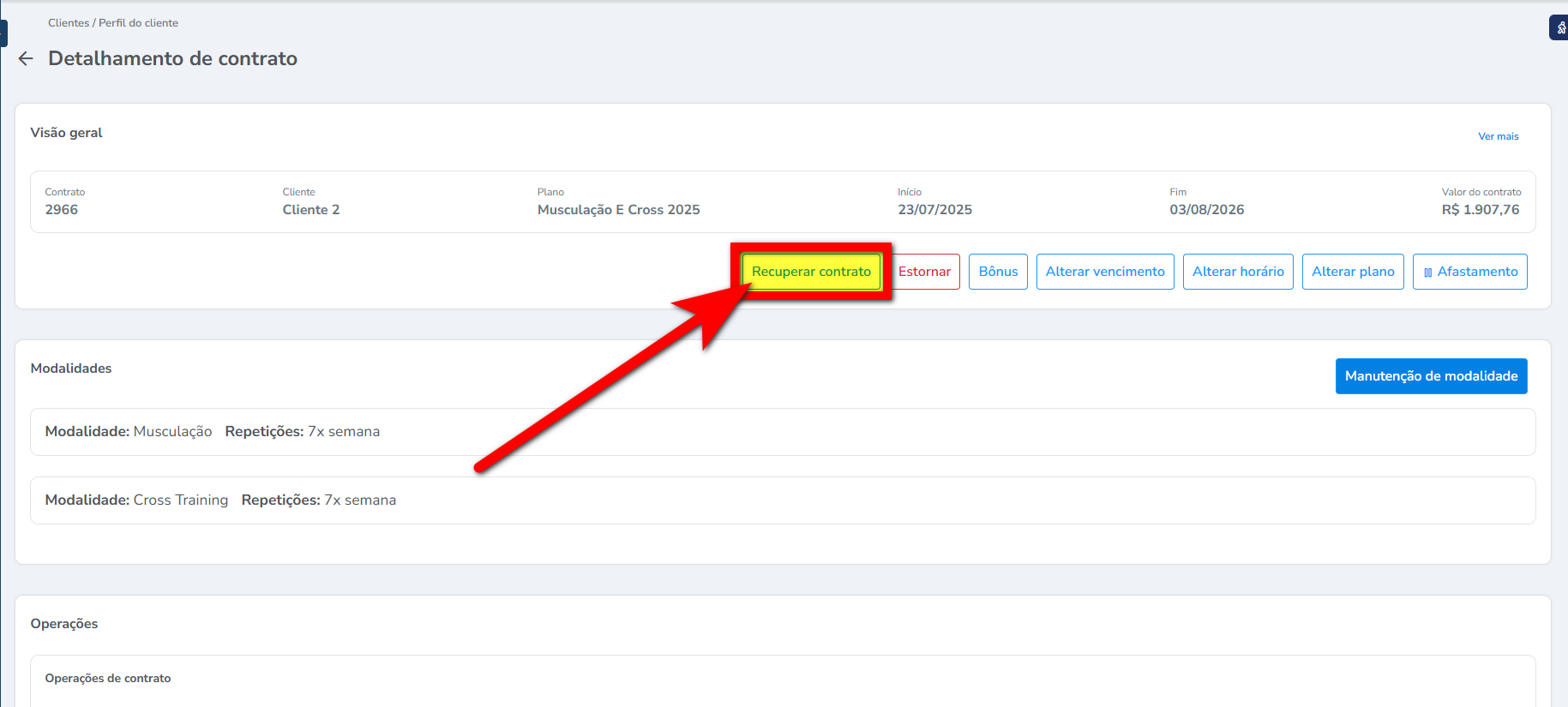 5.1. Se for recuperado, a situação do cliente que recebeu o direito de uso voltará à situação anterior, antes de receber o contrato.