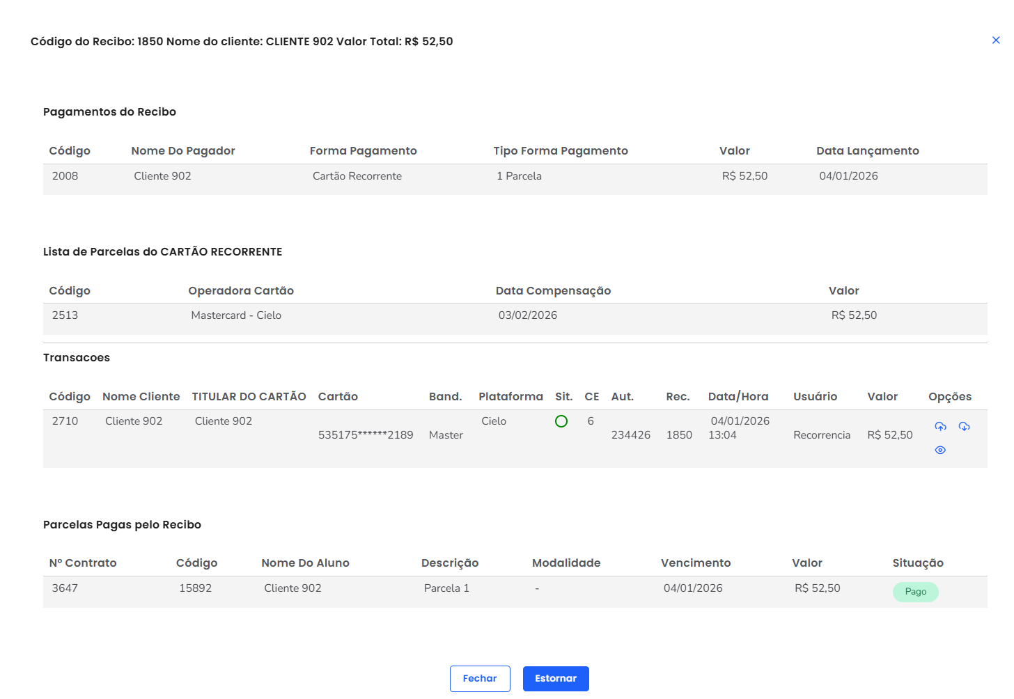 Para saber como estornar um recibo pelo perfil do cliente, clique aqui.
