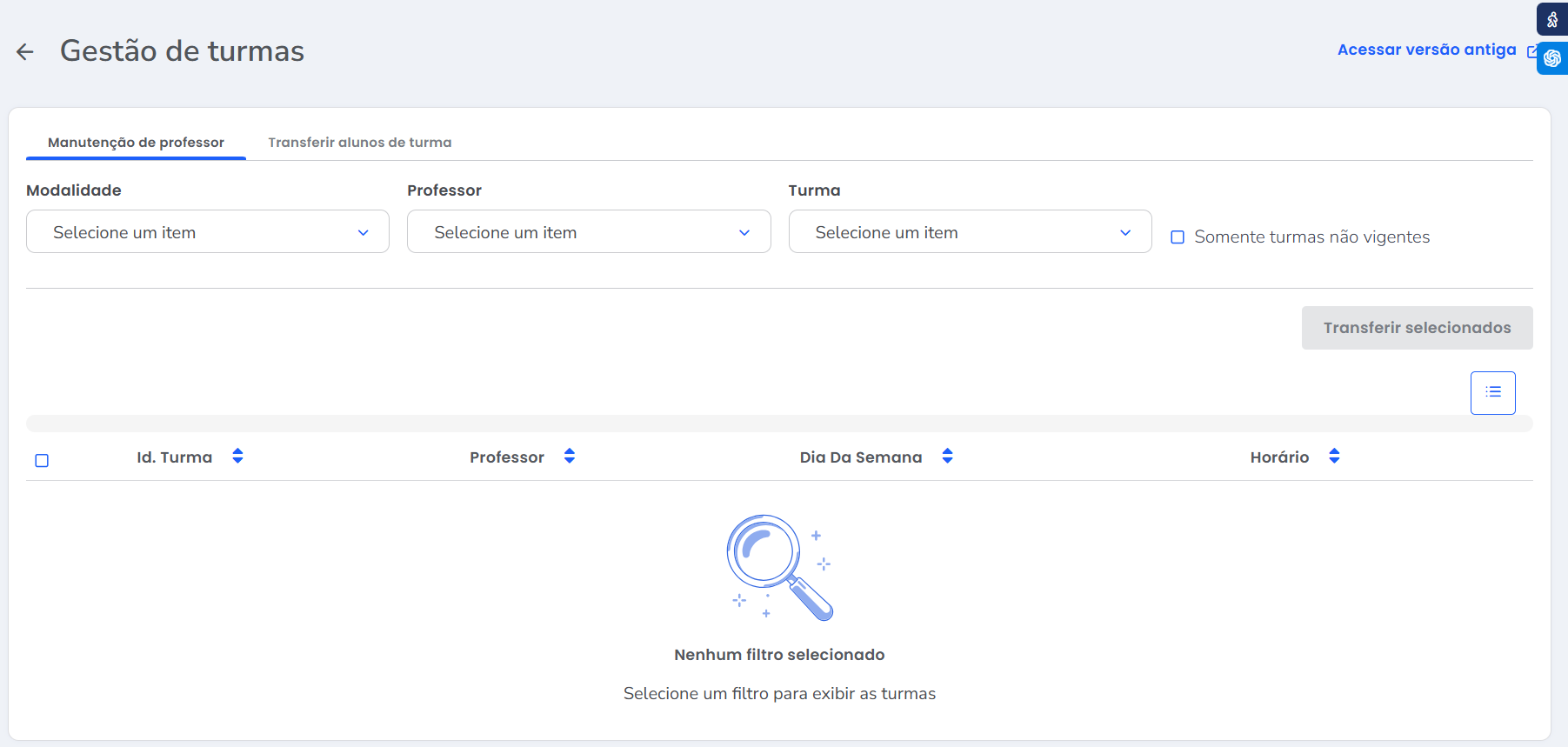 Confira como transferir um professor de uma turma para outra clicando aqui.