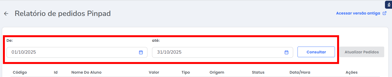 O relatório de Pedidos Pinpad foi criado com o intuito de apresentar todas as solicitações de cobrança realizadas pelo sistema para o Pinpad integrado.