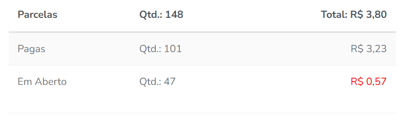 2.6.1. Ao clicar, abre uma nova tela com o detalhamento das parcelas.