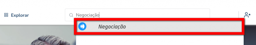 1. Na lupa de busca do sistema pesquise por “Negociação“;