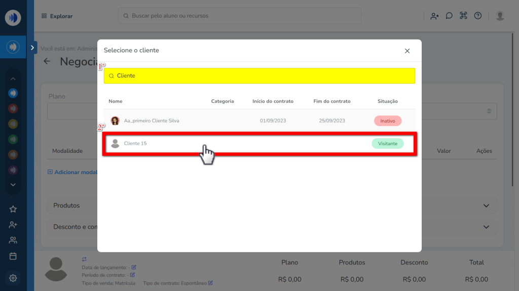 Para saber como cadastrar um cliente (visitante/aluno), clique aqui.