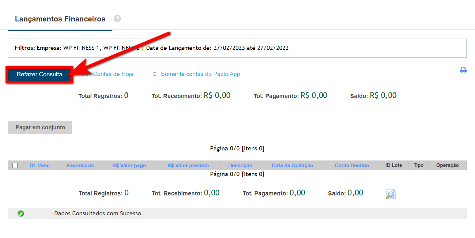 3. Será apresenta a tela de lançamentos, clique em “Refazer Consulta“;