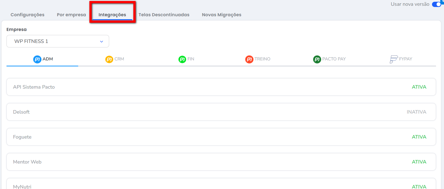 4. Clicando em “Integrações” tem acesso à tela com todas as integrações disponíveis no sistema;
